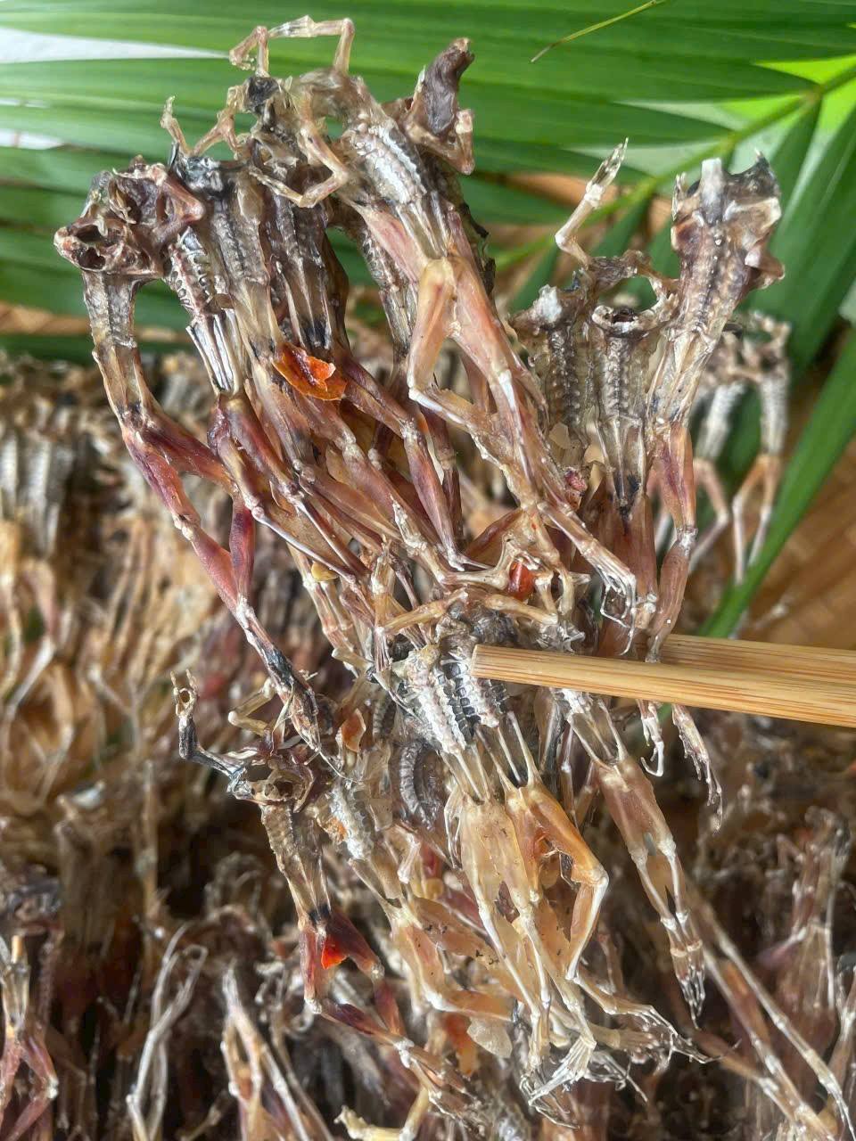 Bà con kể, để làm ra 1kg khô nhái thành phẩm, cần phải có từ 4 đến 6kg nhái tươi. Cung không đủ cầu khiến giá nguyên liệu tăng cao, đẩy giá khô nhái thành phẩm lên mức càng hiếm, càng quý.